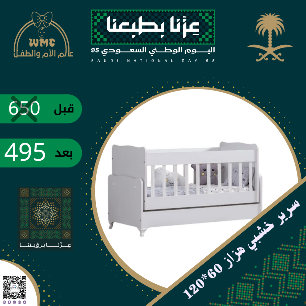 سرير خشبي تركي هزاز للاطفال 60*120