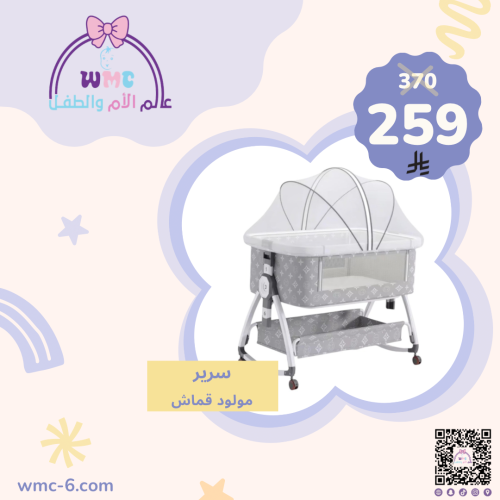 دورين - ناموسيه - متنقل - قابل للطي وله حقيبه - يفتح من الجانب بجوار سرير الام - هزاز